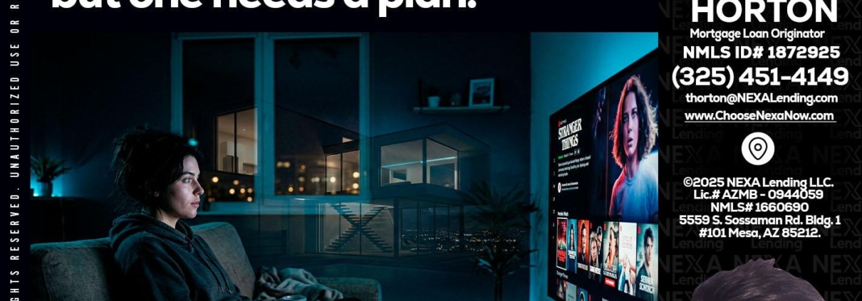 BINGE WATCHING - Tyler Horton -Mortgage Loan OriginatorHi, my name is Tyler Horton. I’m a Loan Officer with NEXA Lending LLC., offering personalized mortgage solutions, fast customized quotes, great rates and service with integrity.