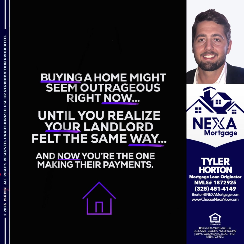 Hi, my name is Tyler Horton. I’m a Loan Officer with NEXA Mortgage LLC., offering personalized mortgage solutions, fast customized quotes, great rates and service with integrity.