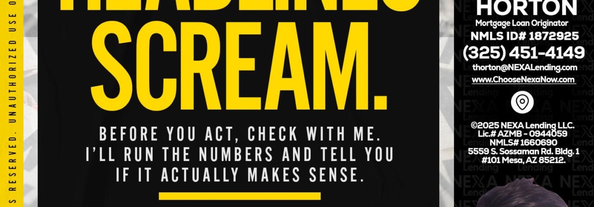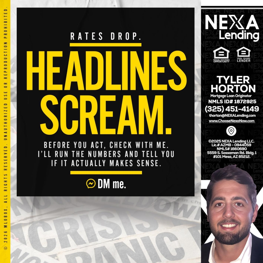 HEADLINES SCREAM - Tyler Horton -Mortgage Loan OriginatorHi, my name is Tyler Horton. I’m a Loan Officer with NEXA Lending LLC., offering personalized mortgage solutions, fast customized quotes, great rates and service with integrity.