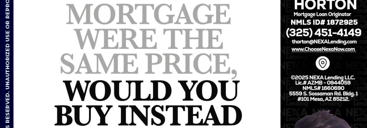 IF RENT - Tyler Horton -Mortgage Loan OriginatorHi, my name is Tyler Horton. I’m a Loan Officer with NEXA Mortgage LLC., offering personalized mortgage solutions, fast customized quotes, great rates and service with integrity.