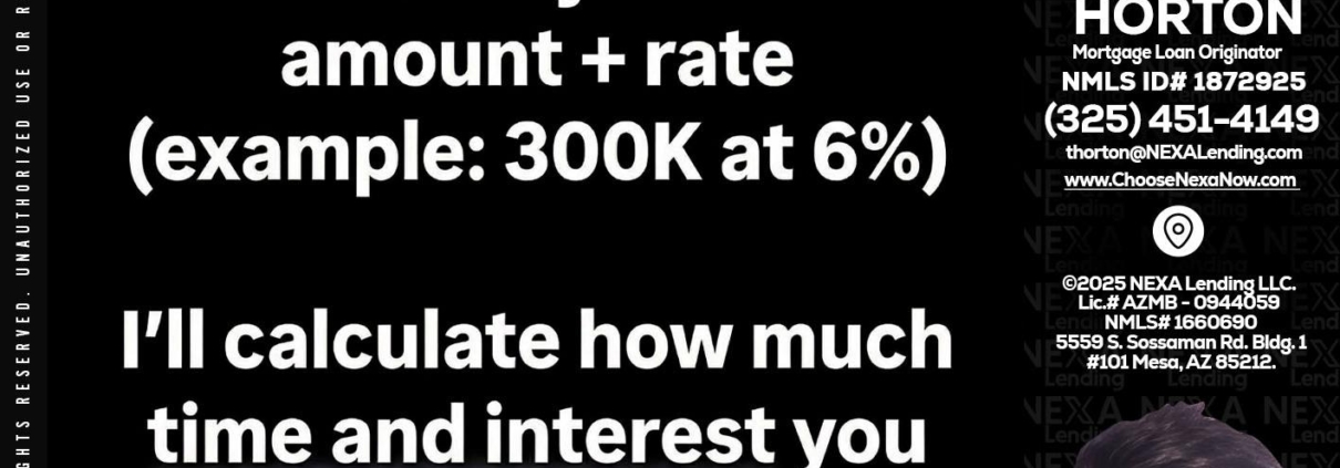 Hi, my name is Tyler Horton. I’m a Loan Officer with NEXA Lending LLC., offering personalized mortgage solutions, fast customized quotes, great rates and service with integrity.