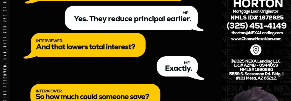 Hi, my name is Tyler Horton. I’m a Loan Officer with NEXA Lending LLC., offering personalized mortgage solutions, fast customized quotes, great rates and service with integrity.