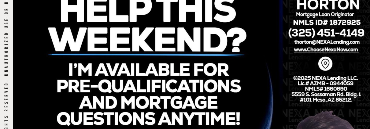 Hi, my name is Tyler Horton. I’m a Loan Officer with NEXA Lending LLC., offering personalized mortgage solutions, fast customized quotes, great rates and service with integrity.