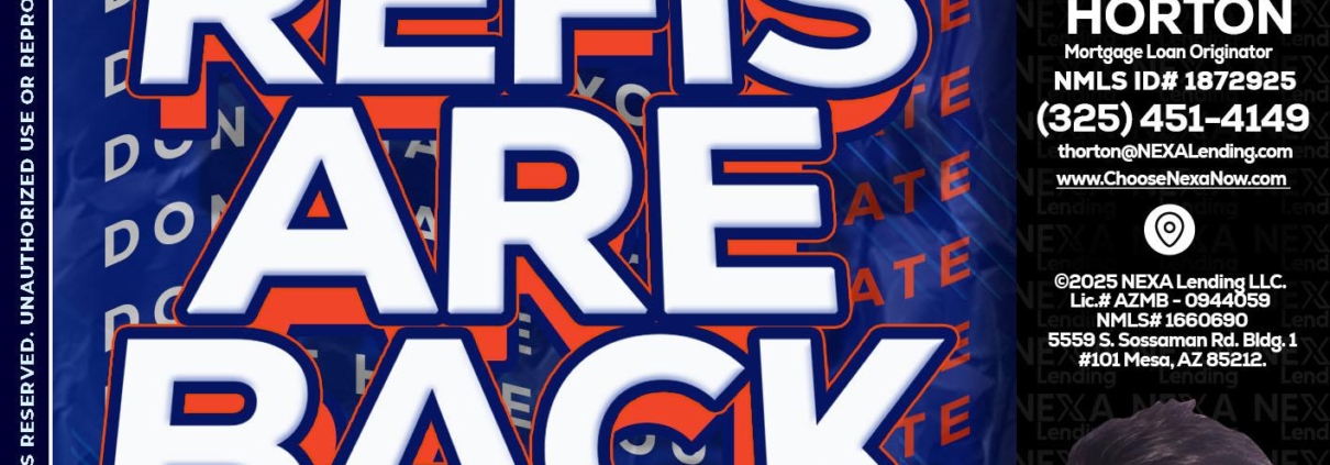 refis are back - Tyler Horton -Mortgage Loan OriginatorHi, my name is Tyler Horton. I’m a Loan Officer with NEXA Mortgage LLC., offering personalized mortgage solutions, fast customized quotes, great rates and service with integrity.
