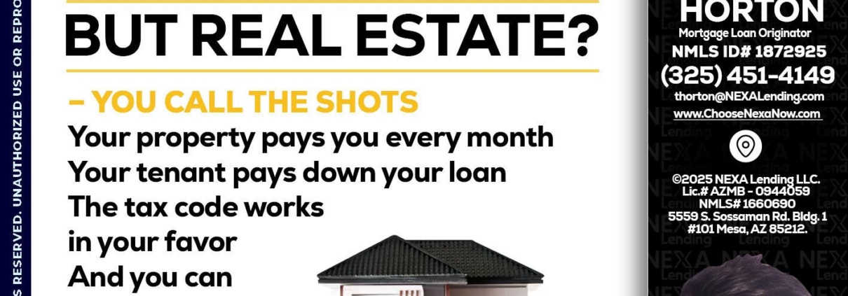 Hi, my name is Tyler Horton. I’m a Loan Officer with NEXA Mortgage LLC., offering personalized mortgage solutions, fast customized quotes, great rates and service with integrity.