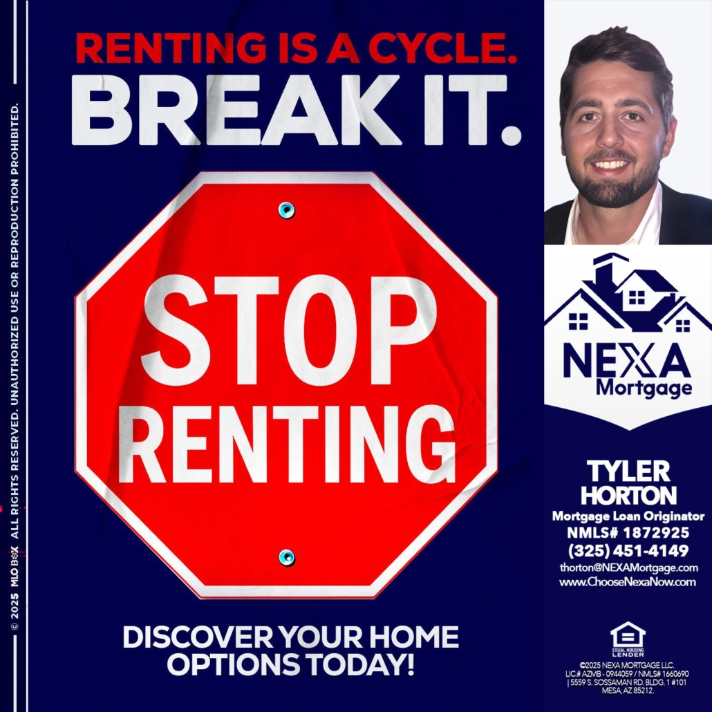 Hi, my name is Tyler Horton. I’m a Loan Officer with NEXA Mortgage LLC., offering personalized mortgage solutions, fast customized quotes, great rates and service with integrity.