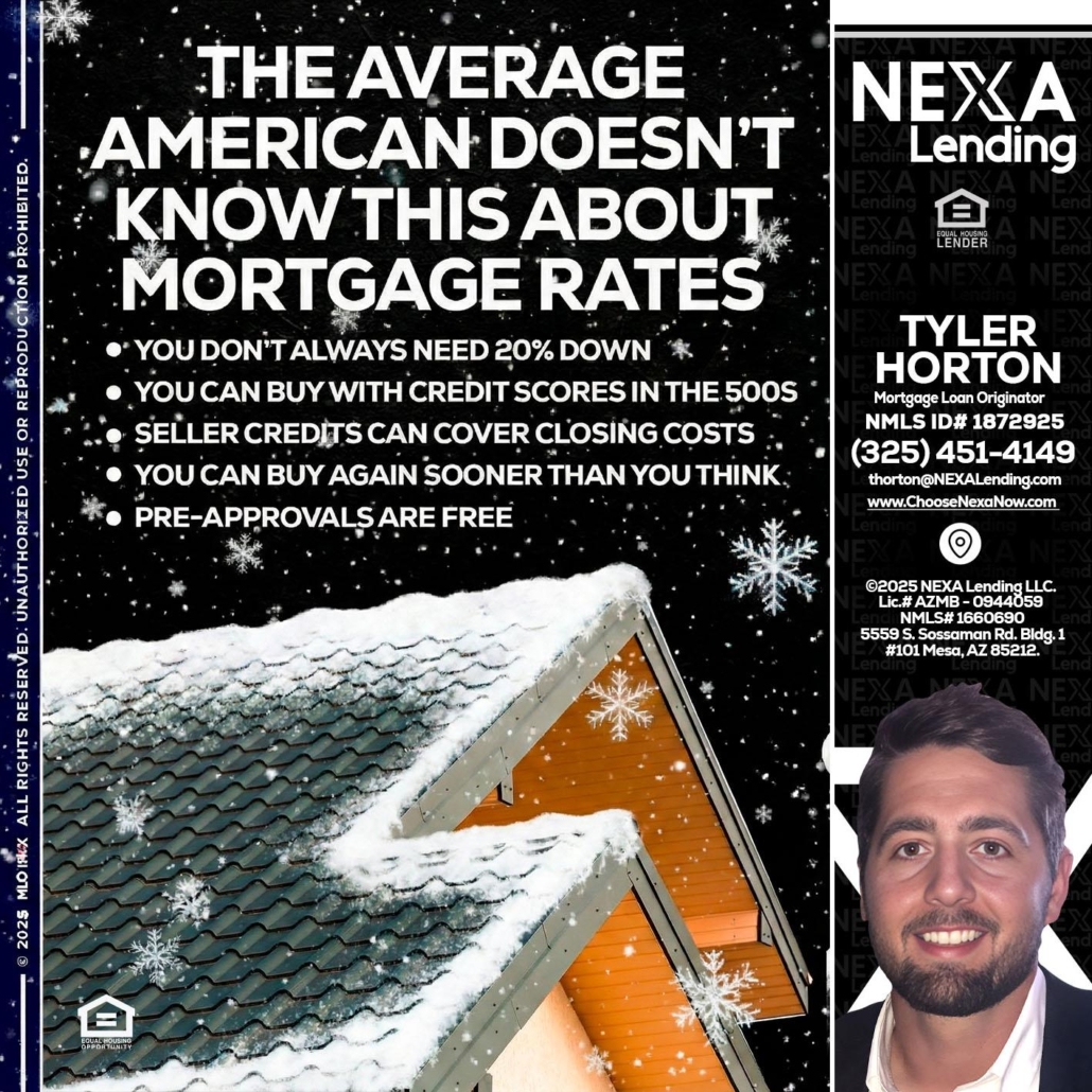 Hi, my name is Tyler Horton. I’m a Loan Officer with NEXA Lending LLC., offering personalized mortgage solutions, fast customized quotes, great rates and service with integrity.