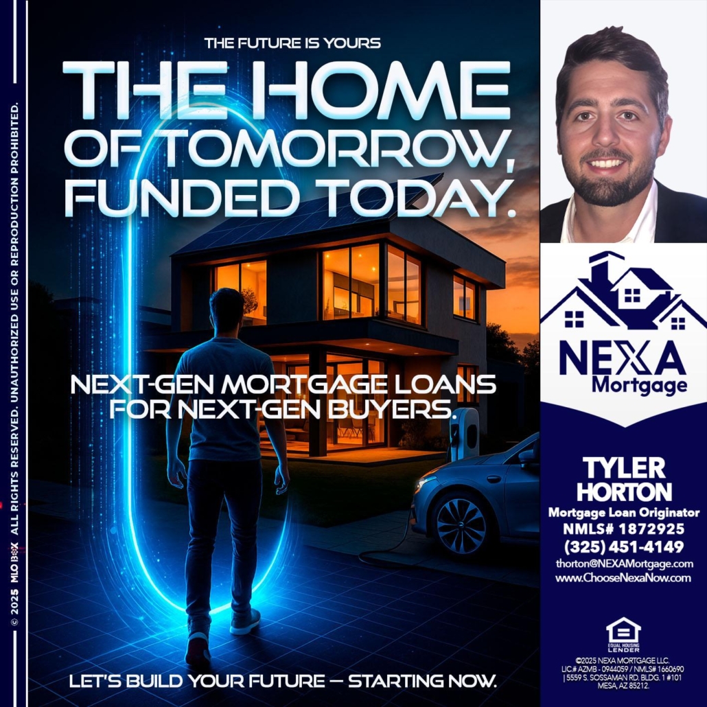 Hi, my name is Tyler Horton. I’m a Loan Officer with NEXA Mortgage LLC., offering personalized mortgage solutions, fast customized quotes, great rates and service with integrity.