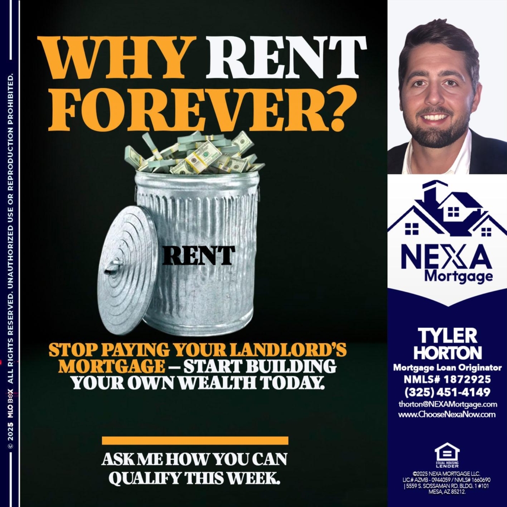 Hi, my name is Tyler Horton. I’m a Loan Officer with NEXA Mortgage LLC., offering personalized mortgage solutions, fast customized quotes, great rates and service with integrity.